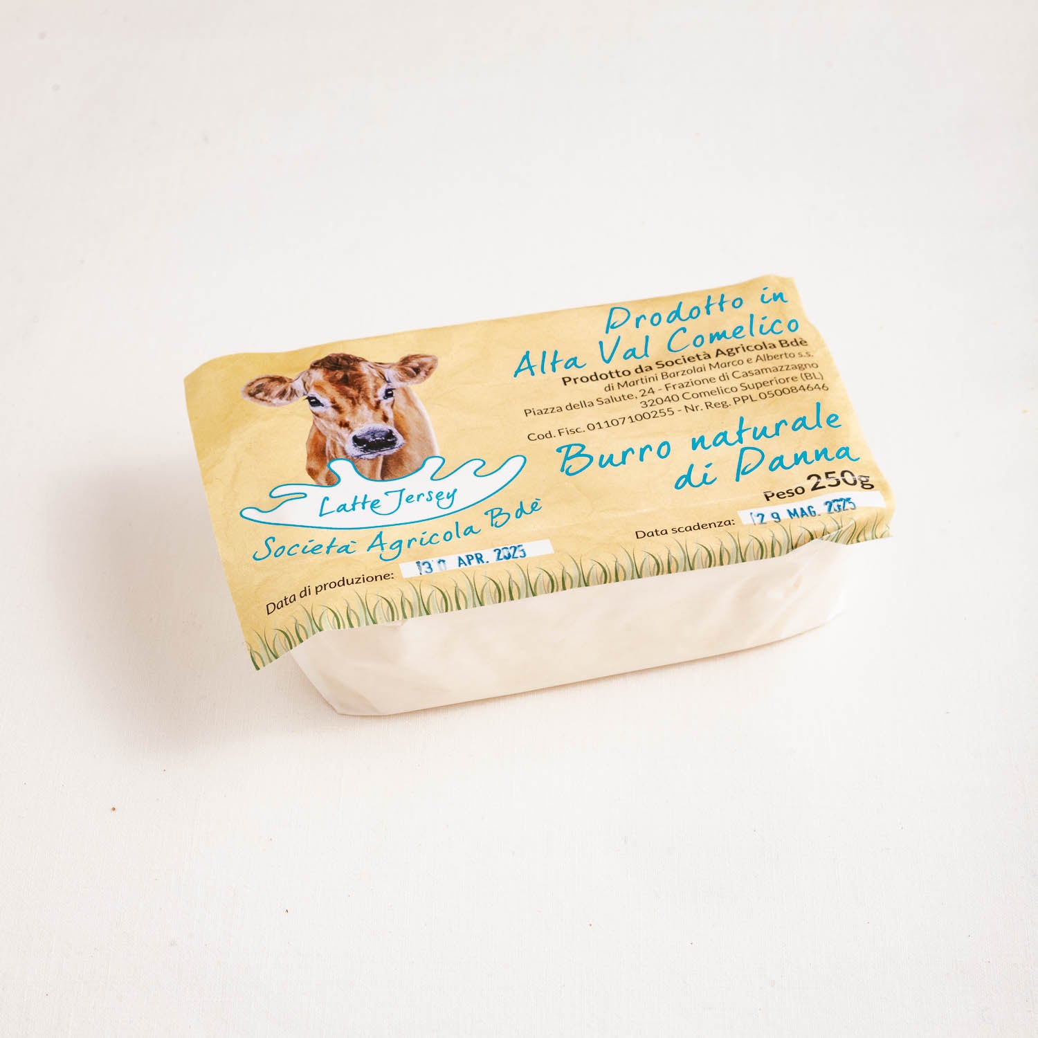 Lasciati conquistare dal gusto autentico e genuino del nostro burro a latte fieno. Un prodotto che racchiude in sé tutta l'essenza dei verdi pascoli della Val Comelico.